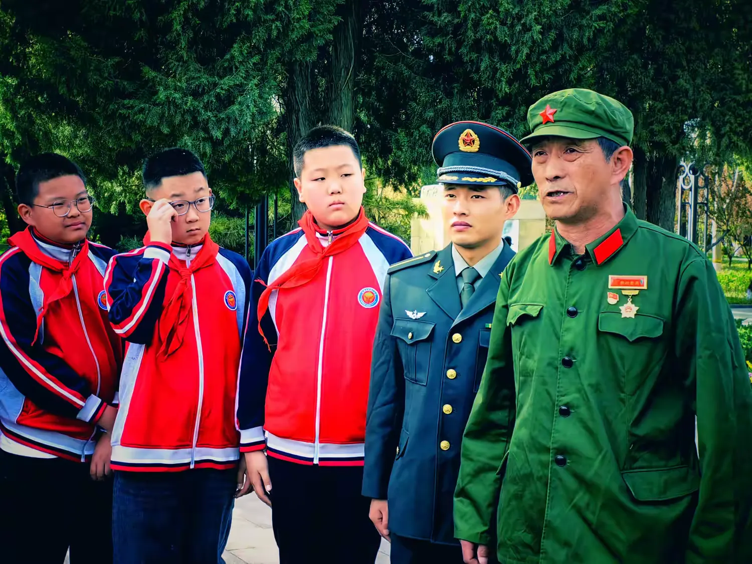 在纪念碑前,敬献花圈、齐唱国歌、默哀等庄严仪式,让孩子们以朴素行动表达对英烈的崇高敬意与深切哀思;各单位代表集体朗诵《山河记得》告慰英烈,“愿每一个春天,都如你们所愿”;参战老兵亲述战斗经历,孩子们在沉浸式教育中深刻感悟了先辈的牺牲精神与家国情怀。队员们表示,老兵爷爷“保家卫国不能退”的话语已铭刻心间。这些环节让红色基因悄然根植于少年心中,激励他们传承英烈精神,立志报国。